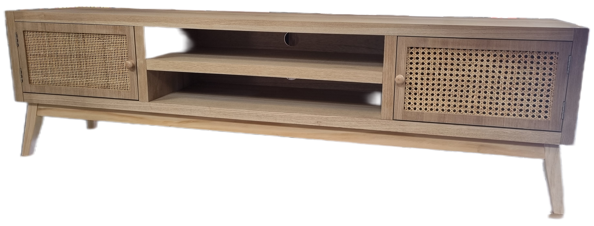 Timber and ratten TV entertainment unit. 1600 long 340 deep 460 high